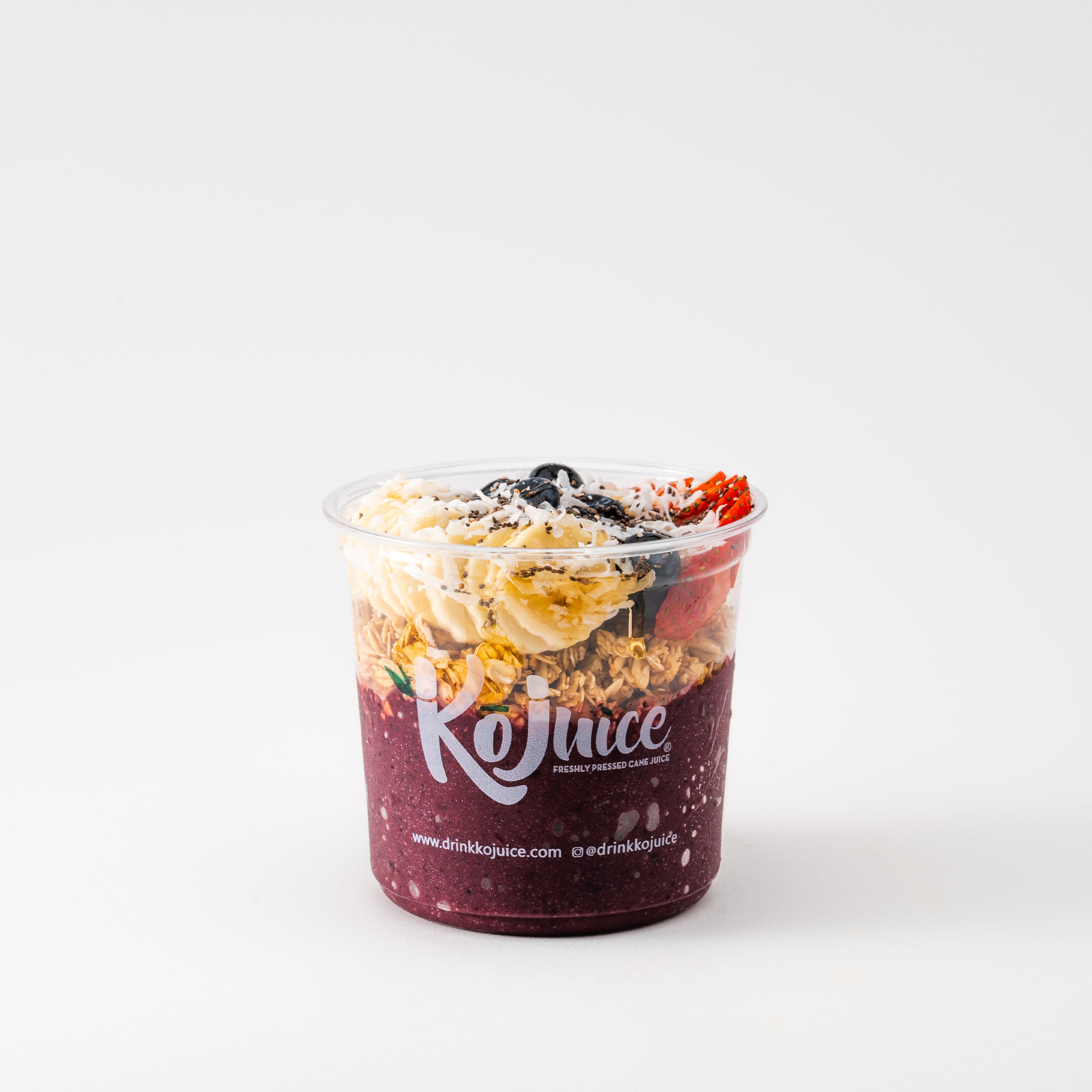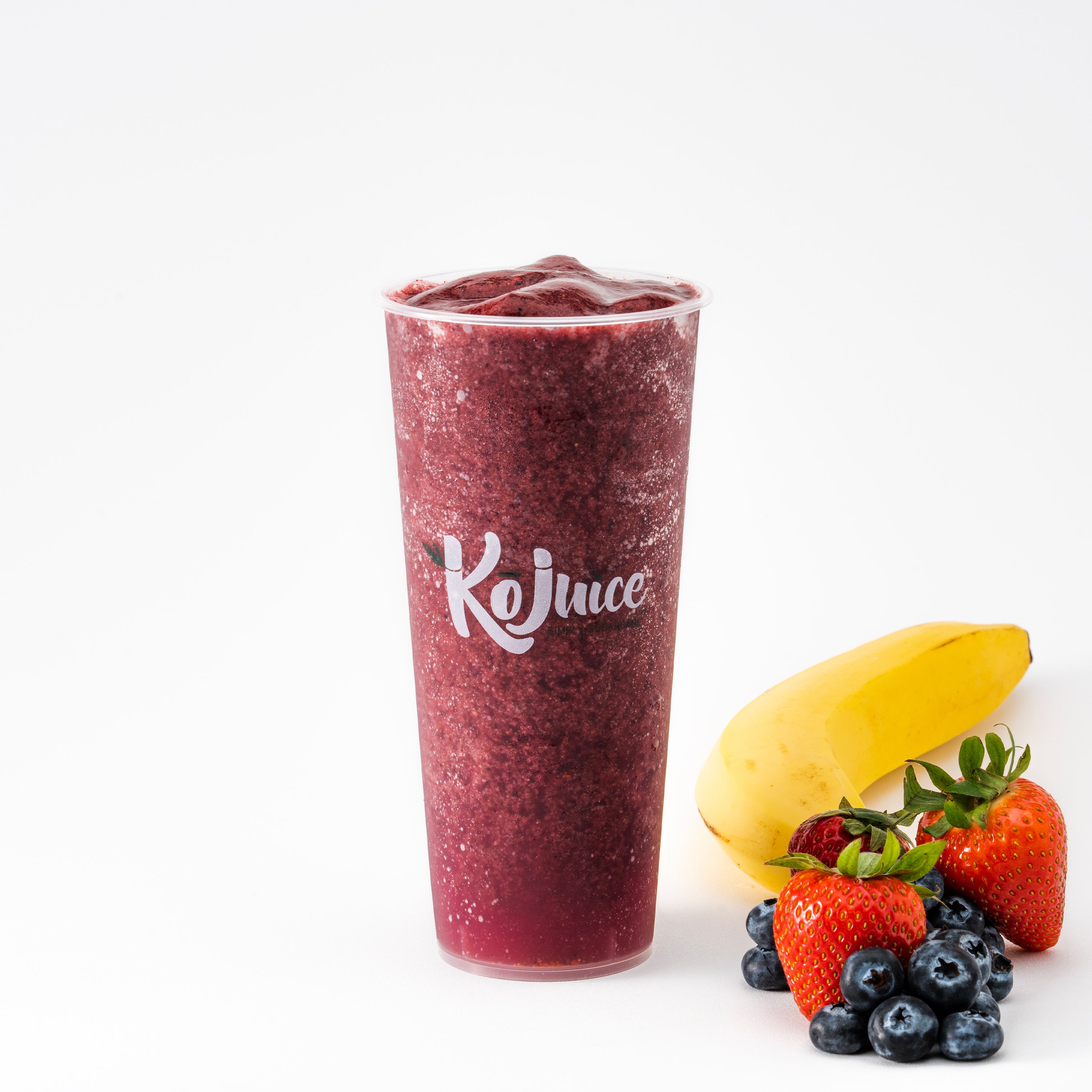 Base: Acai berries, blueberries, strawberries, banana, almond milk