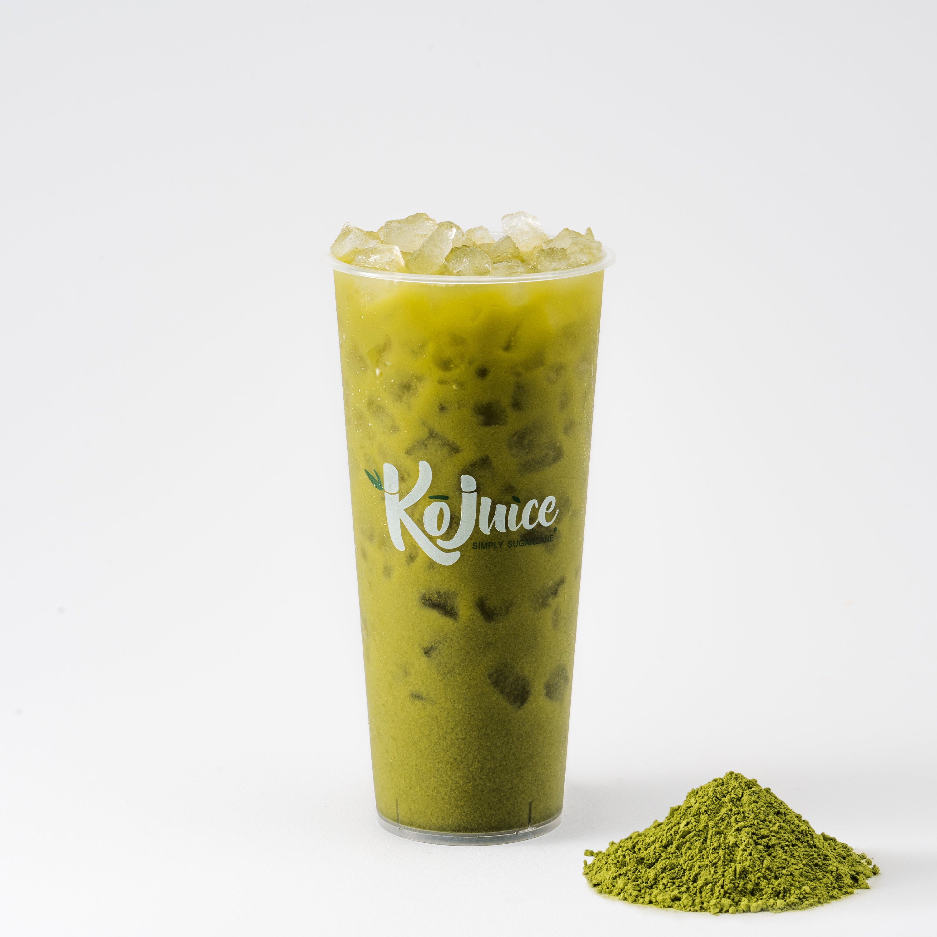 Tapioca pearls, nata de coco, coconut strings, green jelly, and KoJuice sweet milk.