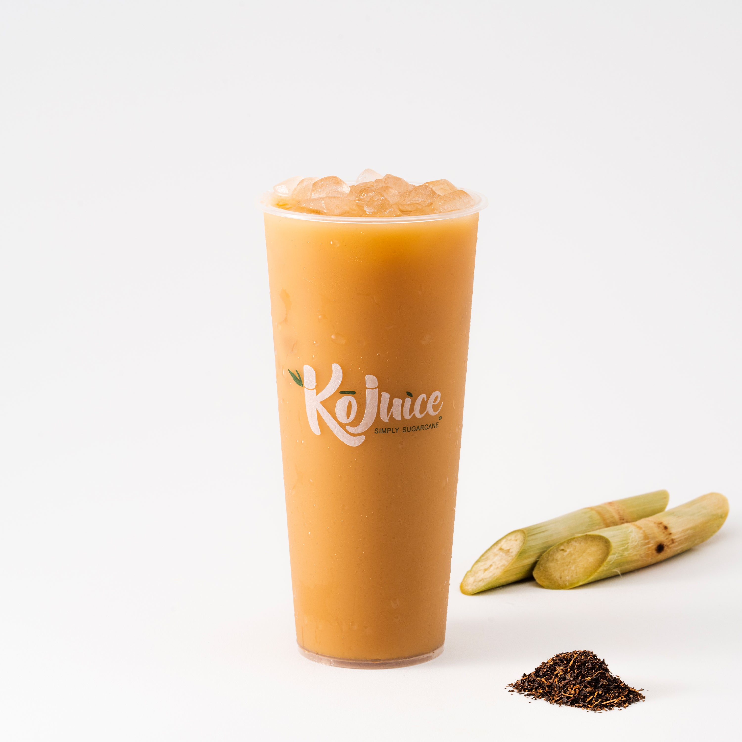 Fresh-pressed cane, freshly brewed black tea, and sweetened dairy milk.