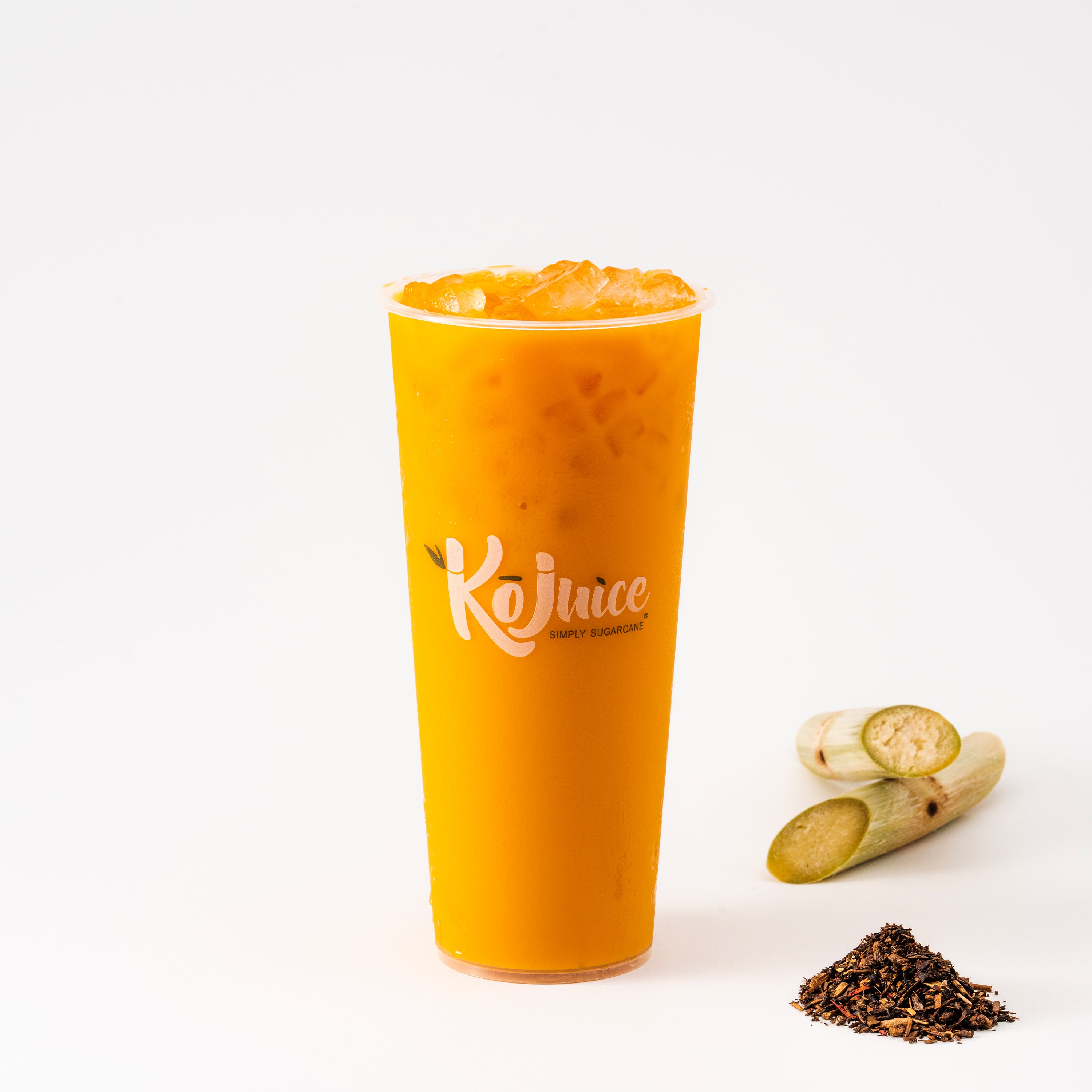 Fresh-pressed cane, freshly brewed Thai tea leaves, and sweetened dairy milk.